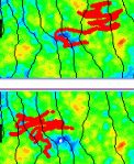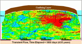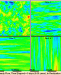 - Temporal variability caused by seasonal fluctuations, in the absence of spatial heterogeneity, causes to and fro motion of the plume, which is reversible. Generally, the plume does not undergo extensive spreading. When temporal variability interacts with spatial heterogeneity, the effect on plume transport is drastic as the plume is shred into fingers and tails. In addition, the process cannot be reversed because the plume may get trapped in a low conductivity zone, which causes enhanced spreading of the plume. When additional heterogeneities, such as partitioning coefficient, are coupled together with temporal variability and spatial heterogeneity, the effect on plume spreading is compounded.