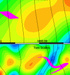 - Multiple scales of heterogeneity have a significant impact on plume spreading. Large scales of heterogeneity provide only a “trend” for plume transport, while the smaller scales spread the plume. If the smaller scales are not modeled, the spreading of the plume is significantly less. When the smaller scales are modeled using an effective macrodispersion model the model is able to predict the overall extent of the plume. However, this model does not provide information on the maximum concentration, concentration variance and the degree of dilution.