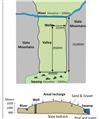 Intermediate - 2D flow modeling and water balance analysis. Background: The town of Hubertville is planning to expand its water supply by constructing a pumping well in an unconfined aquifer. The well is designed to pump constantly at a rate of 20,000 m3/day. Well construction was halted by the State Fish and Game Service who manage the Green Swamp Conservation area. The agency claimed that pumping would “significantly reduce” groundwater discharge to the swamp and damage a waterfowl habitat. The town claimed the fully penetrating river boundary to the north and the groundwater divide located near the center of the valley would prevent any change in flow to the swamp.