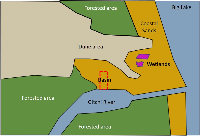 Big Dune Shores LLC is proposing to construct a 17 ft deep boat marina near Big Lake at the mouth of the Gitchi River. But they are running into fierce opposition from the local community and environmental activists who argue that the excavation of the new marina will cause the surrounding water table to decline, including in the area of several important interdunal wetland ecosystems. Dune Shores thinks that a sealed marina bottom will eliminate any long-term impact on the water table in the wetland areas, and a quick dewatering operation will result in a temporary drawdown of the water table that is well within natural fluctuations. You be the judge … would the proposed plan by the developer work? Should permits be issued for construction?